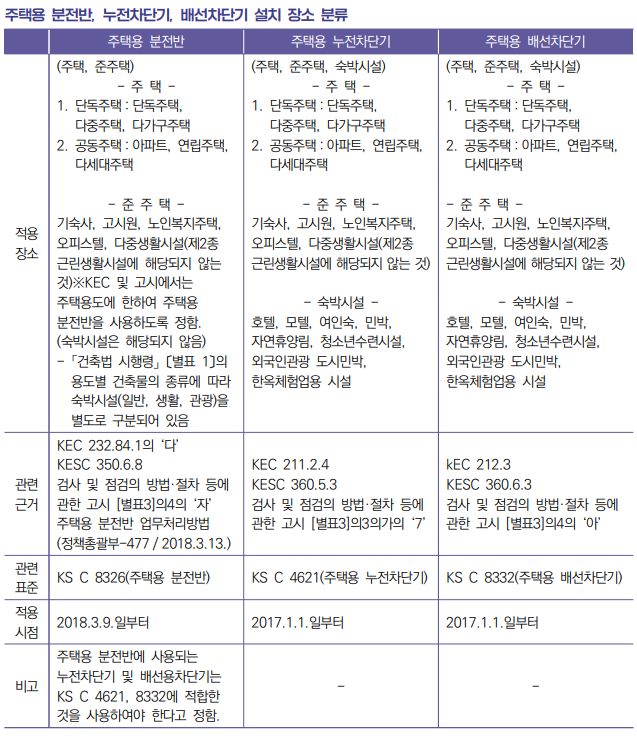 ※ 주택용 누전차단기 및 배선차단기 적용장소 : 주택, 준주택, 숙박시설