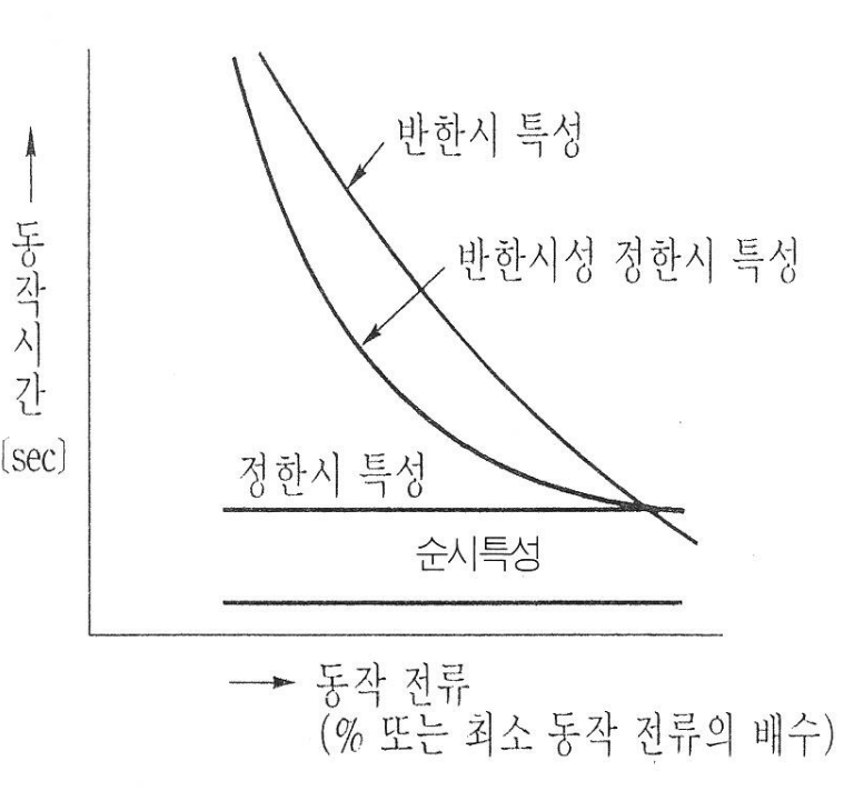 - 반한시성 정한시형 : 입력기 커질수록 짧은 한시에 동작하나 입력이 어떤 범위를 넘으면 일정시한에 동작하는 것
