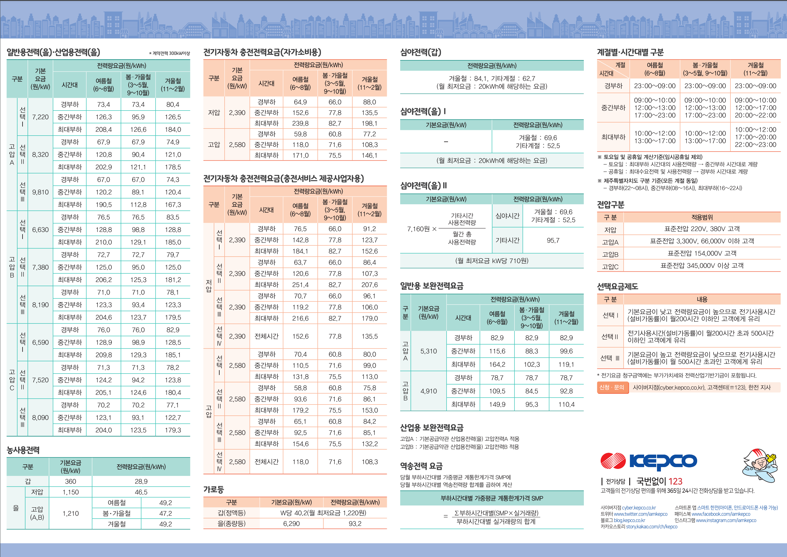 나머지 종별에 대해서는 아래 한전에서 제공하고 있는 전기요금표를 참고하시면 되겠습니다.