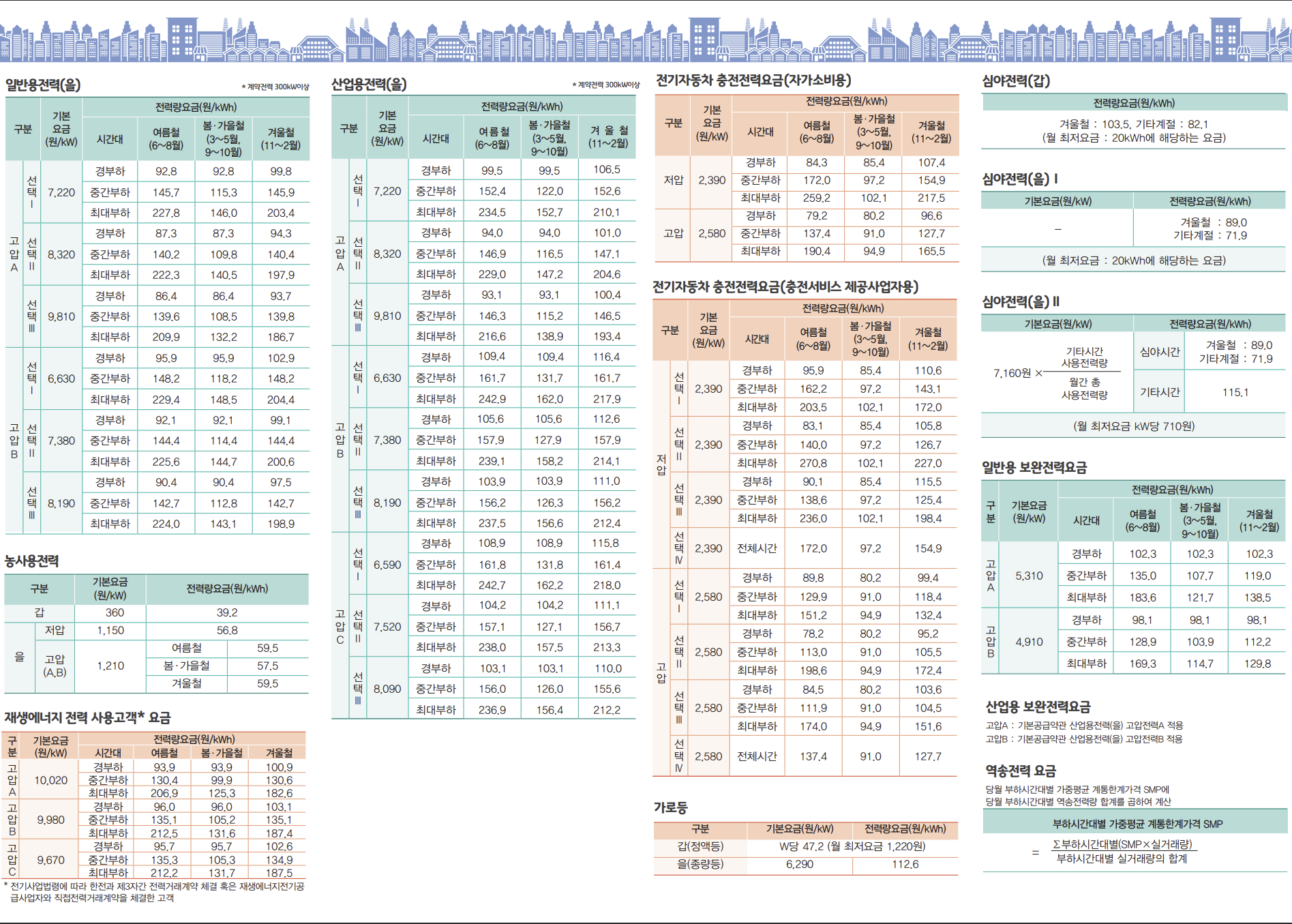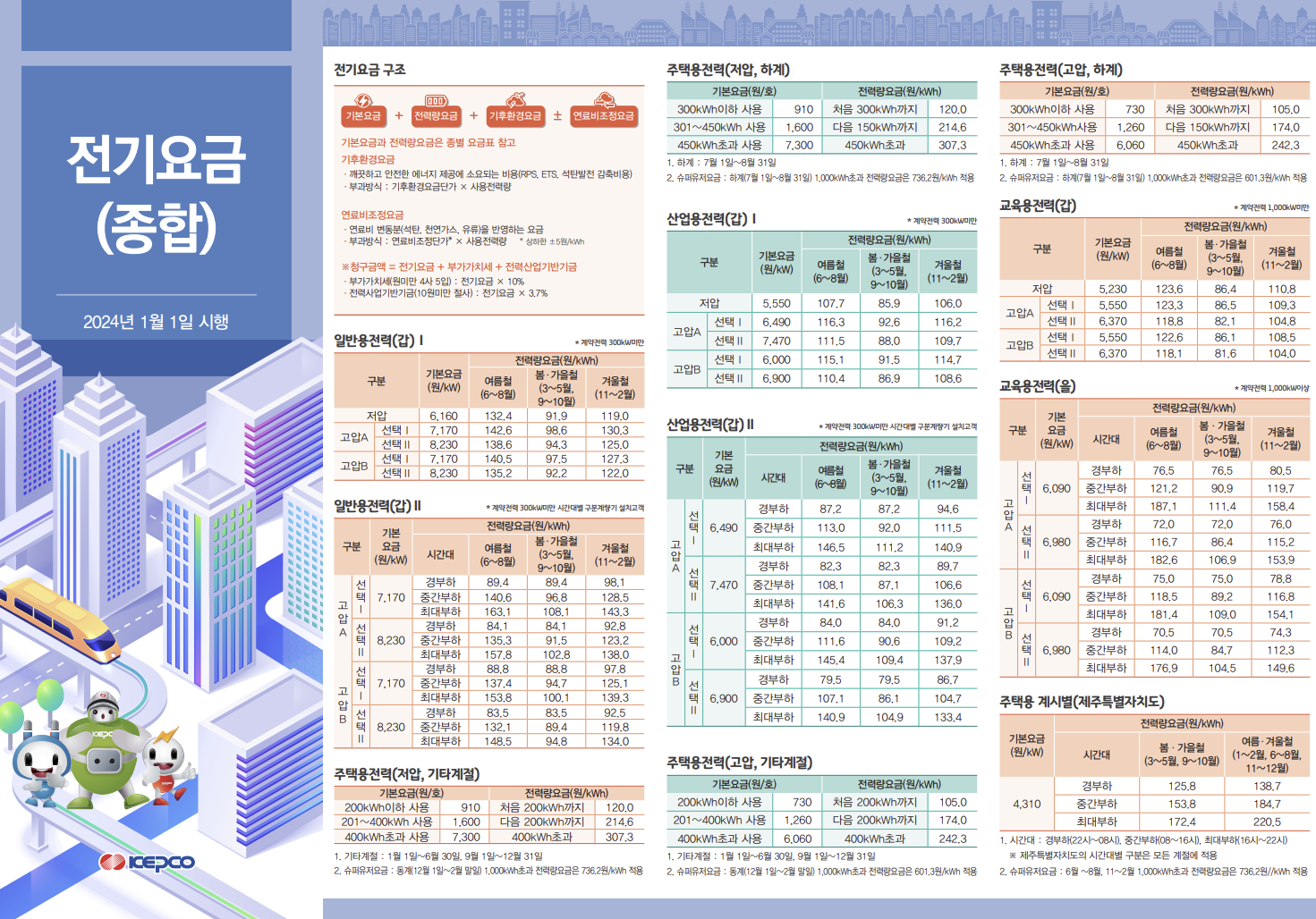 1. 2024년 1월 1일 시행되는 전기요금표 (종합)