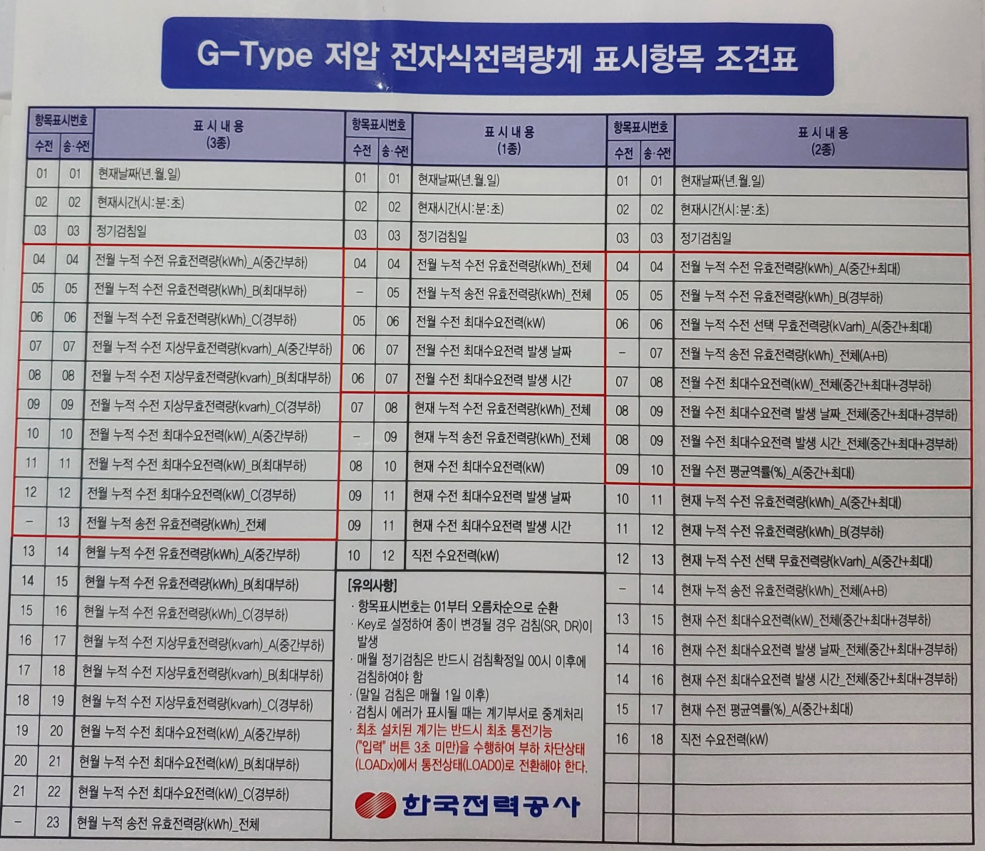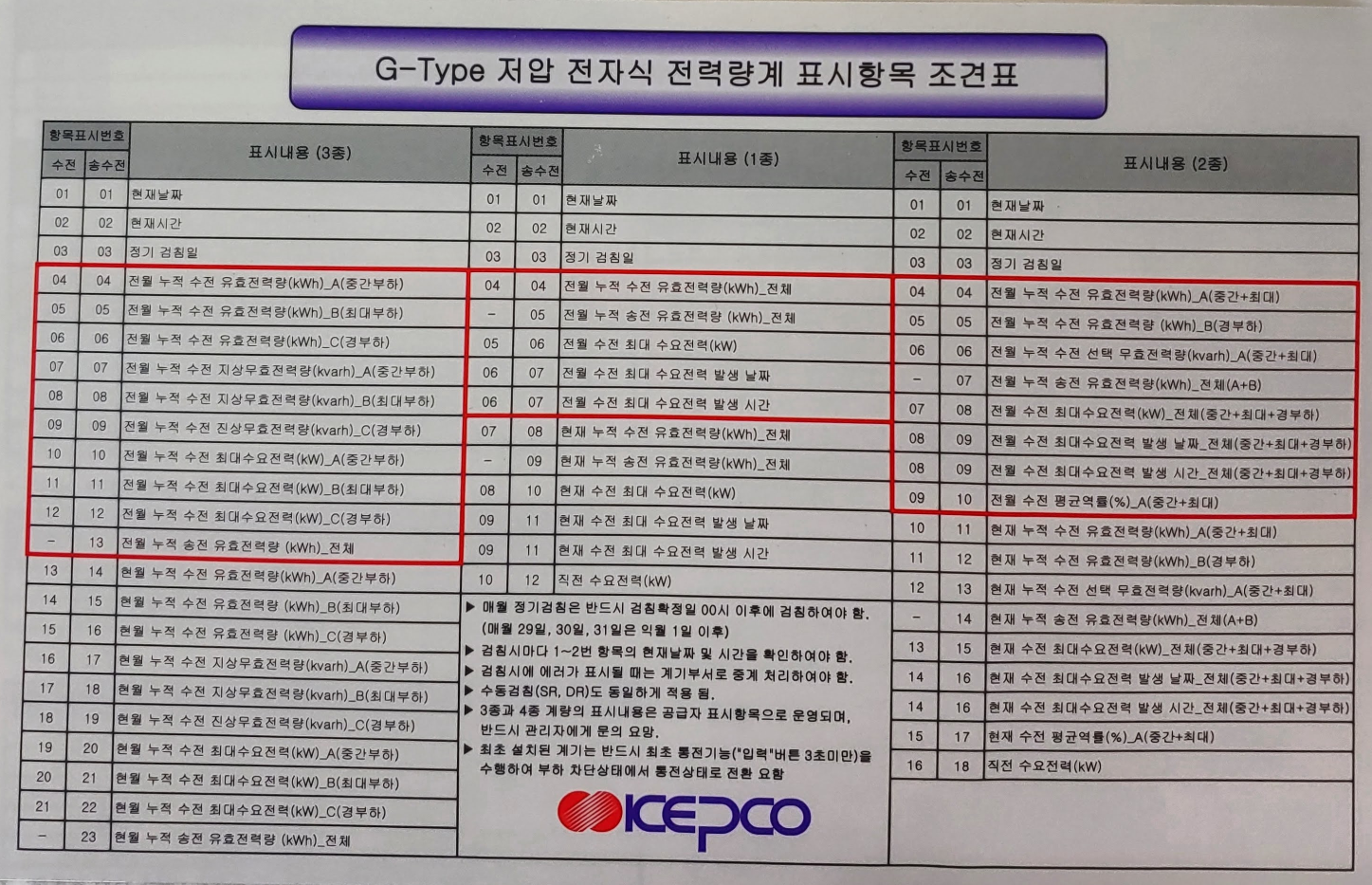 가장 많이 사용되고 있는 것은 E-type과 G-type 입니다. 하지만 보통의 E-type의 경우 유효전력량만 표시되므로 G-type을 기준으로 설명해보겠습니다.