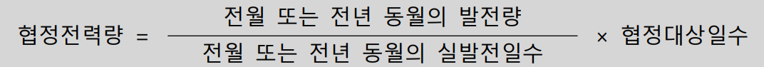 - 그외 협정전력량을 정확하게 확인하기 곤란한 경우 쌍방이 입수할 수 있는 운전 및 기타 관계자료를 기준으로 발전사업자와 한전이 협의하여 결정할 수 있습니다.
