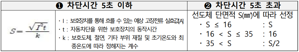 단, TN-C-S 계통의 PEN 도체는&nbsp; 구리(Cu) 10㎟ 이상, 알루미늄(Al) 16㎟ 이상