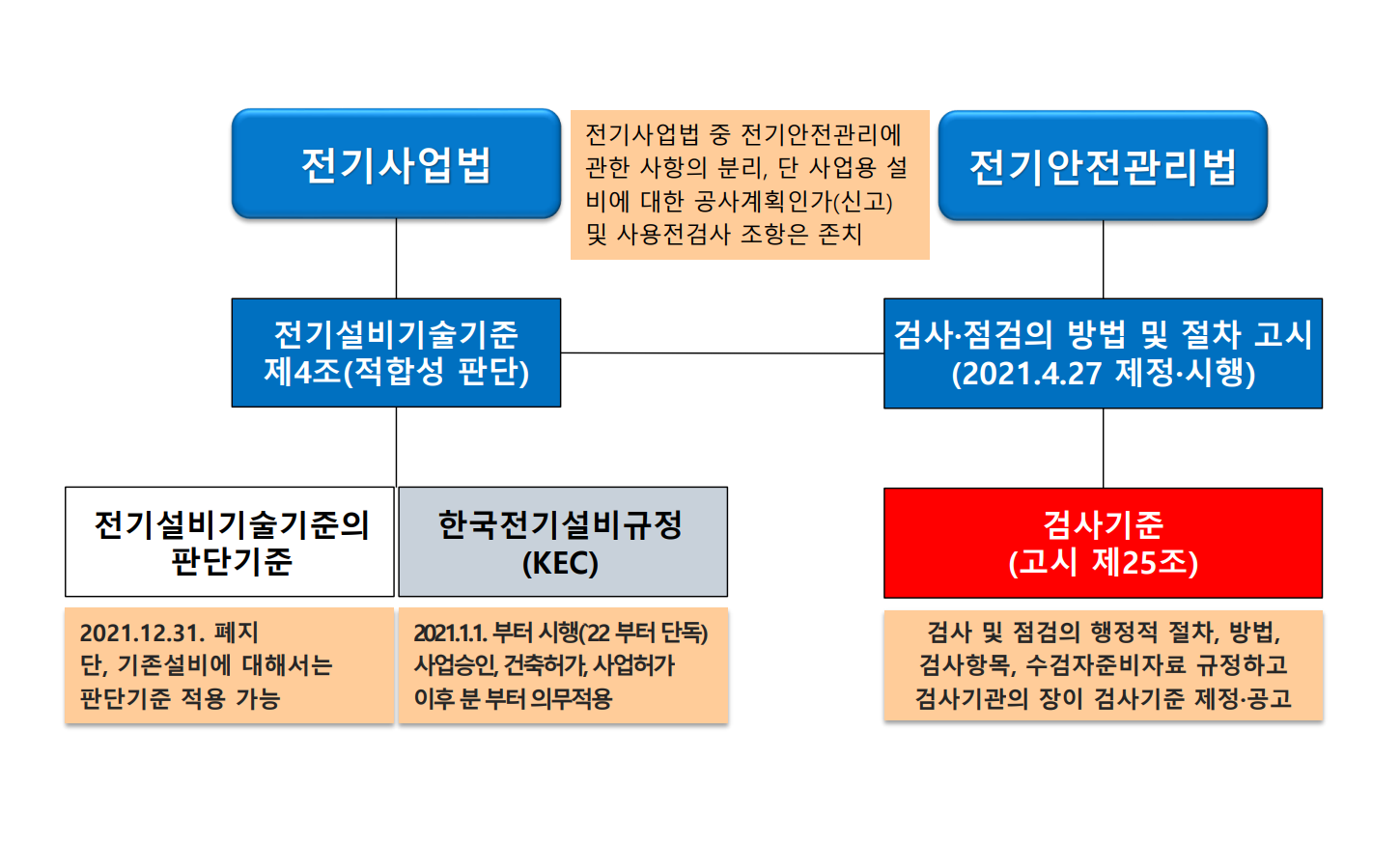 본 자료는 한국전기안전공사에서 2021년 11월에 배포한 'KEC 적용에 따른 검사기준의 적용' 자료를 바탕으로 작성하였으며, 상세 내용은 변경될 수 있음을 밝혀 둡니다.