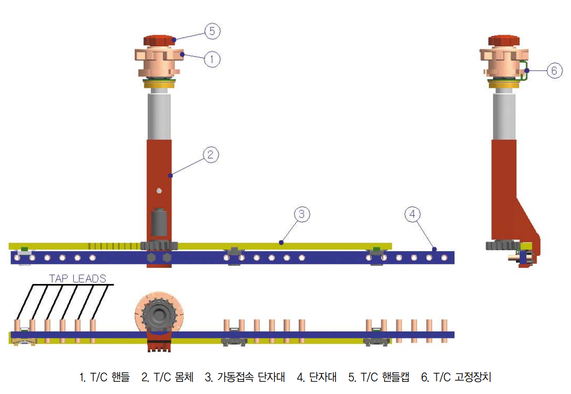 1) 탭절환기는 전원이 인가된 상태에서 조작하면 안됩니다. 또한 탭절환기 조작이 불완전하면 가스발생, 소손까지 발생할 수 있으므로 조작 후에는 꼭 탭위치가 완전한지를 확인해야 합니다.