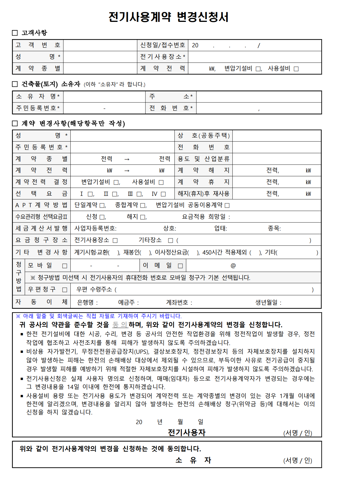 - 전기사용변경신청서